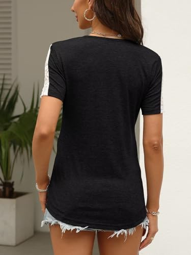 Womens Lace Short Sleeve V Neck T Shirts Summer Casual Tops Loose Fit Tees Blouses 3