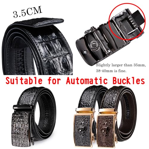 Barry.Wang Ratchet Belt for Men 5 Set Gift Brown Buckle Belts Crocodile Leather Adjustable 1 3/8" Necktie Hanky Cufflinks Wedding Dinner 6