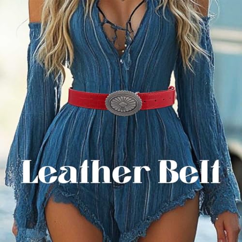 More information about Women Red Leather Belt Vintage Ladies Waist Belts Country Cowboys Cowgirls Belt for Jeans Pants