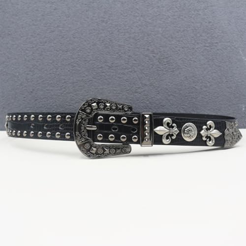 HOT ! Studded Embossed Leather Belt for Women Men,Gothic Punk Western Strap with Skull Head Rivets & Crocodile Pattern