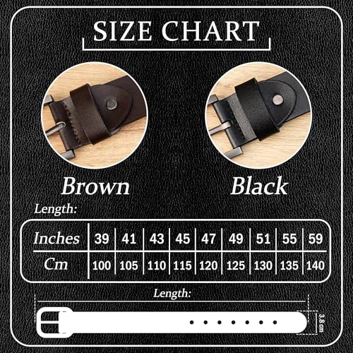 • ENGRAVED BELT for Men: Expertly crafted from high-quality PU leather and featuring intricate laser engraving on BOTH SIDES, these belts offer a blend of style and durability. Available in sizes: Width: 3.8cm, Length: from 95 to 150 cm, ensuring a comfortable fit for every man. Choose from classic BLACK or rich BROWN to suit any outfit or preference.