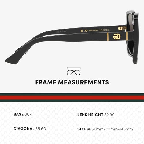 • Precision Fit and Comfort: The Gucci GG 0632S sunglasses feature a lens width of 56mm, a bridge of 20mm, a temple length of 145mm, a lens height of 52.9mm, and a diagonal measurement of 65.60mm, ensuring a perfect fit and maximum comfort for any wearer.