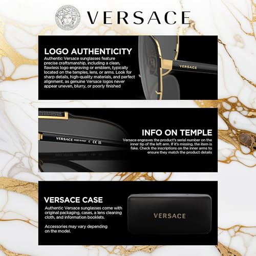 • Premium Craftsmanship: Elevate your style with these expertly designed Versace sunglasses. Featuring a sleek acetate front in black, lightweight black & gold plastic temples, and durable non-polarized lenses, these frames offer the perfect balance of durability and elegance.