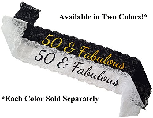 • STYLISH. Our Lace “50 & Fabulous” sash exudes elegance and class whether it is paired with your favorite dress or a casual outfit. It makes for a great photo prop and is a birthday decoration that is sure to be remembered!