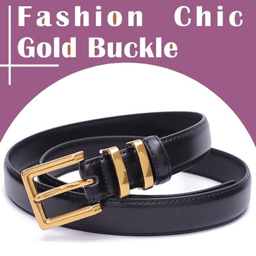 ALAIX Women's Leather Belt for Jeans Pants Fashion Ladies Belt with Gold Buckle Elegant Thin Waist Dress Belts for Women 1