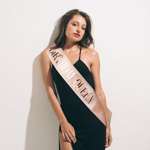 • Birthday Queen Sash. Birthday sash made from soft glitter fabric using hot pressed stamping foil will compliment any outfit and durable enough to last day into night. Rose gold glitter sash + rose gold lettering looks great on photos...It's perfect for those who obsesses over the perfect shot for Instagram.