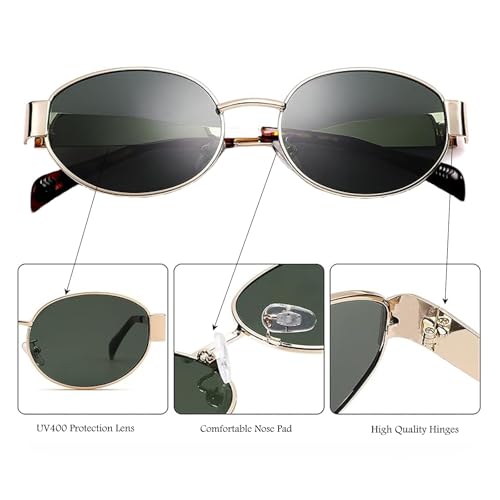 Retro Oval Sunglasses for Women Men Trendy Designer Sun Glasses Classic Metal Frame Shades 90s Gold Glasses 4
