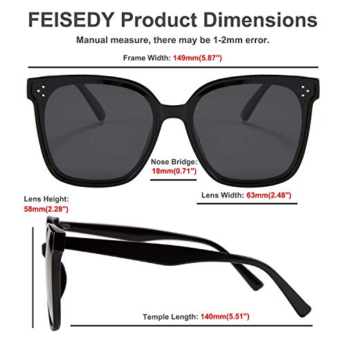 • FEISEDY RETRO Design-- Oversized Square Frame Design in minimalist style with embeded lenses, eye-catching, perfect fashion accessory to go with your outfits, a must-have sunglasses.