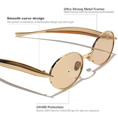 Retro Oval Sunglasses for Women Men - Classic 90s Vintage Trendy Shades with UV400 Protection, Gold Metal Frame 3