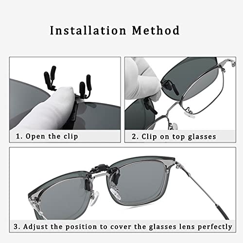 • Fits Most Frames & Easy Application - Clip on your prescription glasses, fits both Metal and Plastic frames, full-frame and rimless frame except. Just clip on and go! Saving Hundreds of dollars instead of getting new prescription Sunglasses!