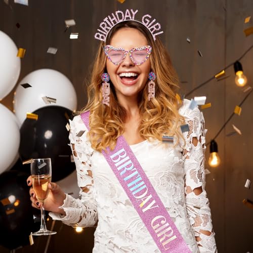 Birthday Sunglasses with Crown, Sash & Earrings, Glasses Headband for Women, Birthday Gifts Accessories Outfits Pink Decorations Party Favors 7