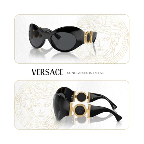 • Introducing the Versace VE4462: The Versace VE4462 combines daring allure with iconic Versace details in a bold wraparound shape. These oversized injected frames for women offer a fashionable yet futuristic style, perfect for everyday wear or making a statement at special occasions. Color code: GB1/87.