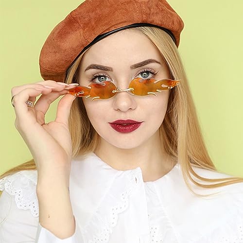 Junsika Flame Sunglasses for Women Men Trendy Rimless Flame Glasses Halloween Party Novel Fire Glasses UV400 Protection 7
