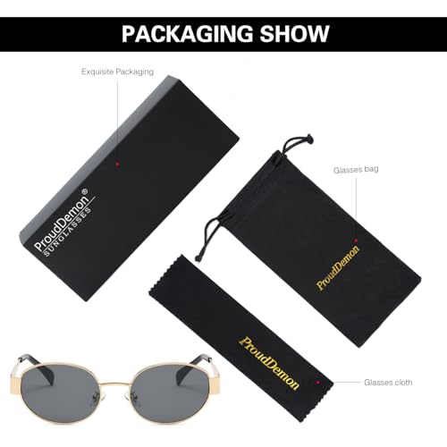 • [Lightweight Metal Sunglasses] : The ProudDemon Trendy oval sunglasses are Designed for both women and men who value style and individuality. These oval sunglasses for women feature a lightweight construction that feels comfortable on your face. The snug fit ensures comfort around the nose and ears, making them ideal for extended wear without any discomfort.