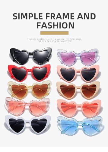 • LWBTOSEE Multi-color Peach Heart Sunglasses for Women Men Pink Sun Glasses are made of high-quality plastic lenses and metal frames, which are durable, lightweight, and comfortable to wear. The color of the lenses can be changed to match your clothes or personal style.