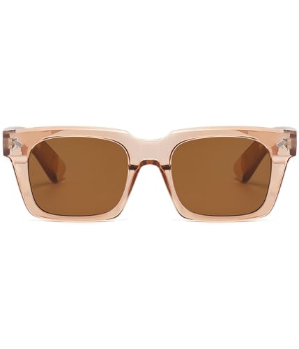 EYLRIM Trendy Square Sunglasses for Men Women Square Frame Sun Glasses with Hammer Shaped Rivet Design 6