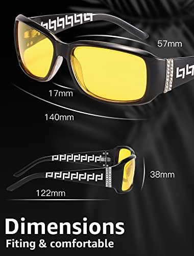 • Stylish Rhinestone Design: These night vision glasses decorated with many rhinestones on the edge are perfect for many outfits, fashion sense improves with rhinestones and unique print embellishments.