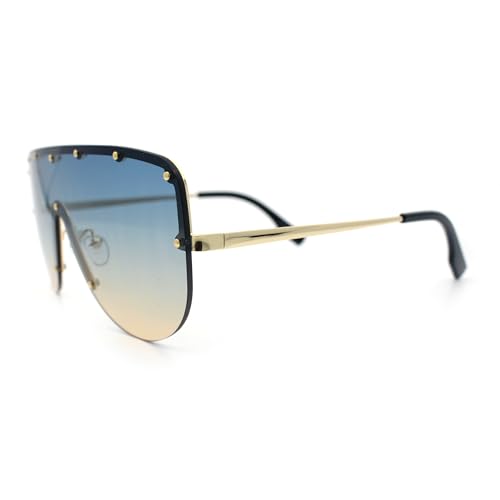 Metal Stud Flat Top Half Rim Rimless Shield Oversized Racer Sunglasses 5