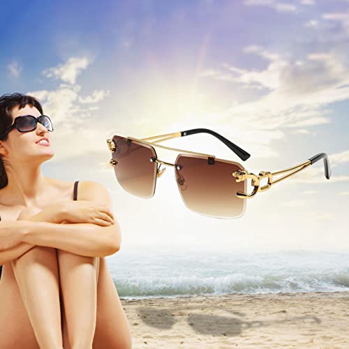 • 【Fashion Design】: rimless sunglasses with temples, comfortable nose pad will allow you to wear it for a long time and you will not feel tired.