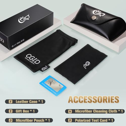 • PRODUCT DIMENSIONS - Frame width:137mm(5.4 inch)--Lens Width:52mm(2.05 inch)--Lens height:48mm(1.89 inch)--Nose Bridge:21mm(0.83 inch)--Temple Length:145mm(5.71 inch) GIFT PACKAGE INCLUDES 1* Leather case,1* Brand Packing Box, 1*Microfibler pouch,1*Cleaning soft cloth,1*Polarized Test Card.