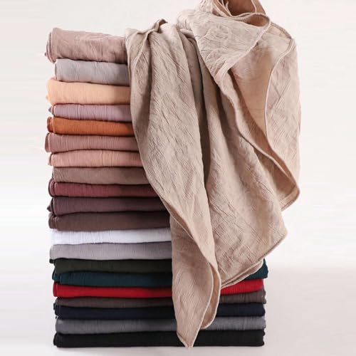Crinkle Cotton Head Scarf Shawl,3PCS Long Hijab,Plain Color Breathable Turbans Headwraps for Muslim Women 7