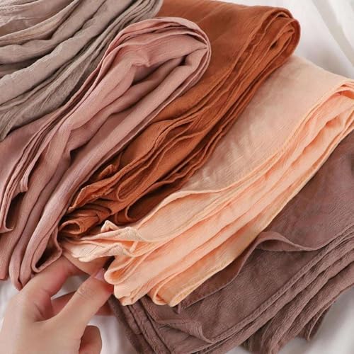 Crinkle Cotton Head Scarf Shawl,3PCS Long Hijab,Plain Color Breathable Turbans Headwraps for Muslim Women 6