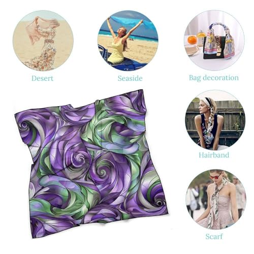 Silk Scarves Women's Scarf Silk Neck Scarf Purple And Green Shades Printing Adult Silk Scarf Suitable for Women's Neck Hair Head Daily Life Decoration And Gifts 1