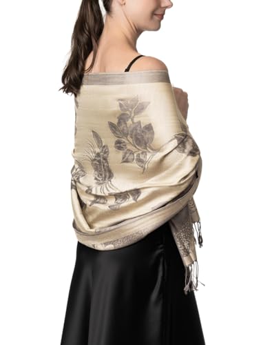 • So versatile, great as a stole, a wrap, a cover-up or a dressy scarf. It's also used as bridesmaid shawl and wedding shower gift so you can stay within your budget yet enjoy the elegance and beauty of pashmina jacquard shawls.