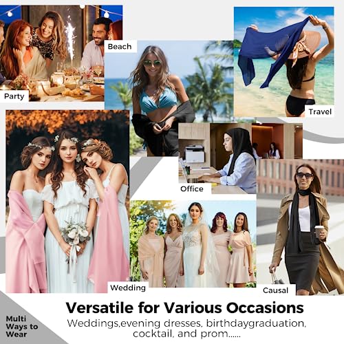 Shawls and Wraps for Evening Dresses, Chiffon Shawl Wraps for Women, Elegant Shawls for Bridal Party, Lightweight Shawl for Dresses or Formal Occasions, Bride Bridesmaid Shawl for Wedding 79"x26" 5