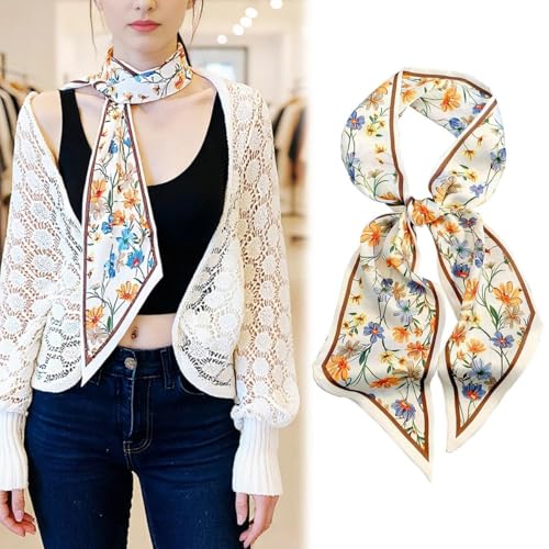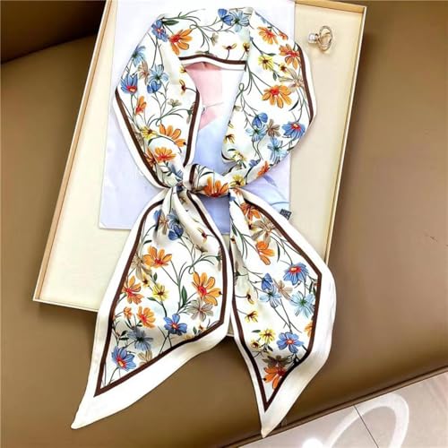 More information about 1pc White Background Small Flower Long Strip Scarf For Spring And Summer, Paired With Shirt Ribbon, Multifunctional Waist Belt, Headband, High-end Printed Scarf