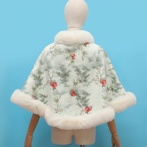 More information about FEESHOW Women Fuzzy Shawls Wraps Chinese Style Wedding Bridal Cape Cloak with Faux Pearls Button