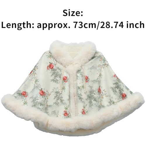 • The parcel you received contains a piece of women elegant thicken fuzzy cape cloak faux pearls button closure Chinese style clothes for themed party and photography
