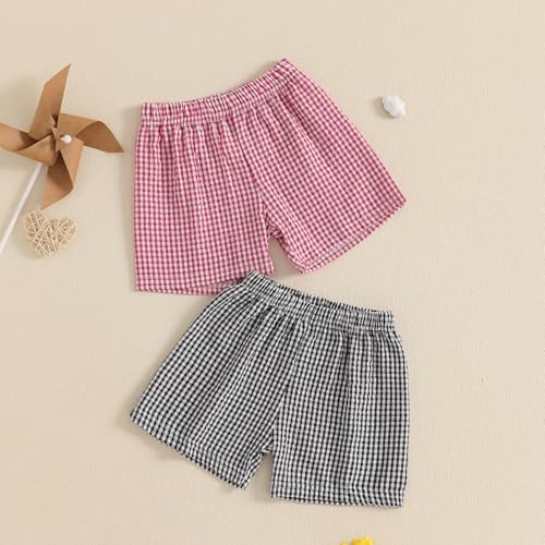 2-Pack Toddler Baby Boy Girl Gingham Seersucker Shorts Elastic Waist Check Shorts Summer Casual Short Pants Bottoms 2