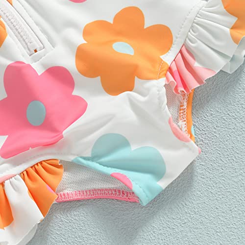 Baby Girl Swimsuit Zip Rash Guard Ruffled Long Sleeve One Piece Swimwear Toddler Bathing Suit Rashguard Beach Wear 6
