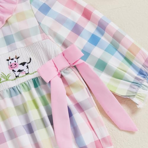 Fall Clothes Infant Baby Girl Long Sleeve Romper Bodysuit Collared Plaid Cow Embroidery Farm Outfit 7