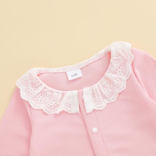 Newborn Infant Baby Girl One-Piece Baby Girls Fall Romper Lace Ruffled Long Sleeve Button Down Waffled Jumpsuit 6