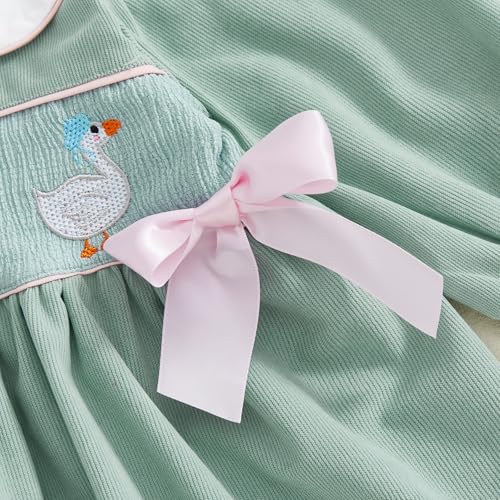 • Design:Baby goose outfit,baby goose dress,silly goose baby outfit,baby girl smocked outfits,toddler girl fall clothes.Smocked baby dress,green dress toddler,with goose embroidery,peter pan collar and long sleeve,ruffle and bow design,adds a sense of fashion and sweetness.Birthday girl dress,toddler formal dress,toddler party dress,toddler long sleeve dress