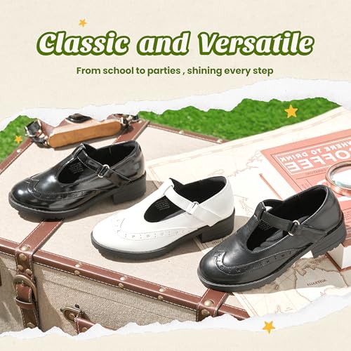 PATPAT Girls School Shoes, Toddler Little Big Kid, White Black T-Strap Mary Jane Flats 6
