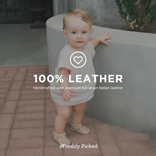 • [STAYS ON FOOT] Freshly Picked is known for attention to detail, quality, comfort and style. This full-grain leather crib shoe is crafted with easy-on elastic opening that stays put on baby's foot.