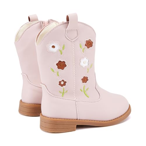 BMCiTYBM Toddler Girls Cowgirl Boots Little Kids Mid Calf Western Boots Flower Cowboy Boots Pointed Toe Riding Shoes 1