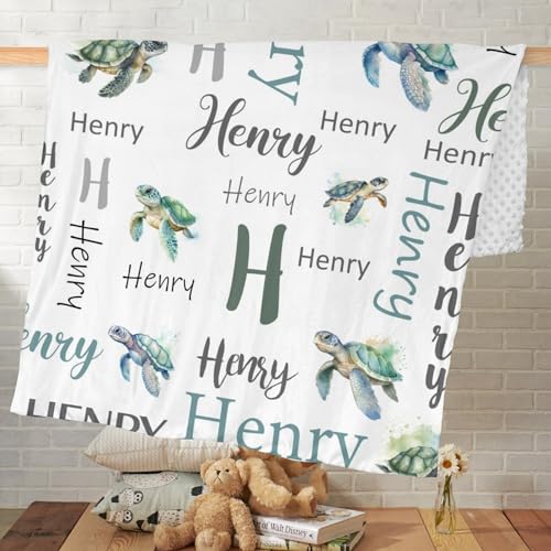HOT ! Personalized Baby Blankets for Boys Girls Sea Turtle Baby Blanket Soft Plush Minky Baby Blanket with Name Receiving Blankets Girl Boy Newborn Toddler Kids Customized Baby Blanket