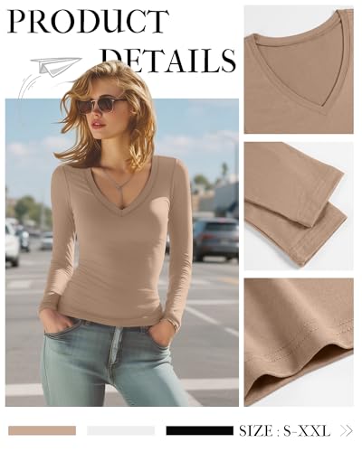• Functional Design: these women's long sleeve basic tops feature deep v neck and slim fit, which can show your body shape and personal charm. This t-shirt is stylish and sexy, casual and versatile, an ideal item in your wardrobe