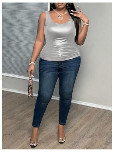 • Features: Plus size, leather, square neck, ruched, sleeveless. skinny, club tank top for women