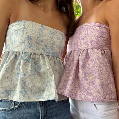 • Features: Y2k tops, 90s style bandeau tube crop tops, sleeveless, backless, tie up, floral print, cute summer tops for women, slim fit, coquette preppy grunge clothes, can perfectly show your perfect neck and collarbone