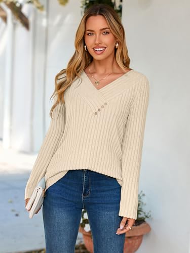 Glamaker Women's Fall Long Sleeve V Neck Tunic Tops Lightweight Button Casual Soft Loose Blouse Sweatshirts 1