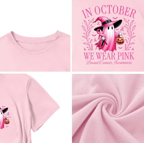 Breast Cancer Shirts for Women in October We Wear Pink Shirt Halloween Pink Ghost Tshirt Support Cancer Gift Tee Tops 5