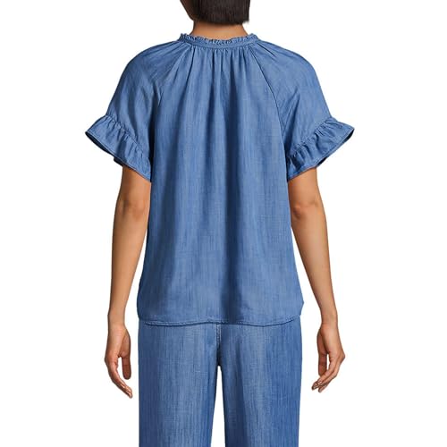 Womens Short Sleeve Ruffle Blouse V Neckline Ruffled Collar Shirt Casual Blue Top 5