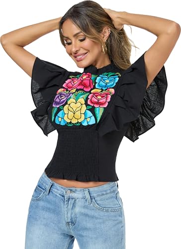 • Versatile styling: This cute peasant blouses for women can be paired with shorts, skinny jeans, skirts, high waist a line skirt, straight jeans, wide legging pants, high heels, earring, necklace and more for a feminine bohemian look. This womens summer tops can be used as cute tops for women, womens business casual tops, boho tops for women, ruffle top, crop tops for women going out, floral blouses for women, cute shirts for women, mexican shirts for women.