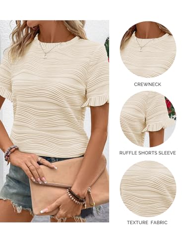 Samefar Womens Crewneck Texture Ruffle Shorts Sleeve Shirts Casual Loose Flowy Tee Tops Blouses Fashion Outfits Trendy 2