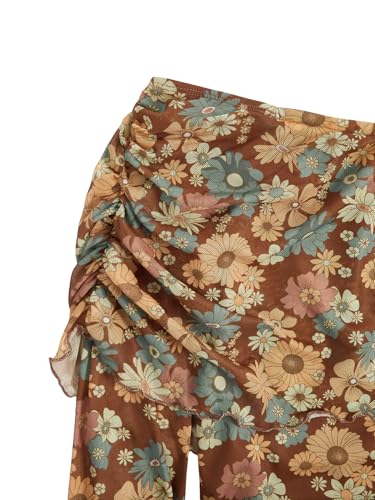 Verdusa Women's 70s Off Shoulder Flare Sleeve Ruched Tee Top Floral Print Lettuce Trim Crop Tee Shirt 6